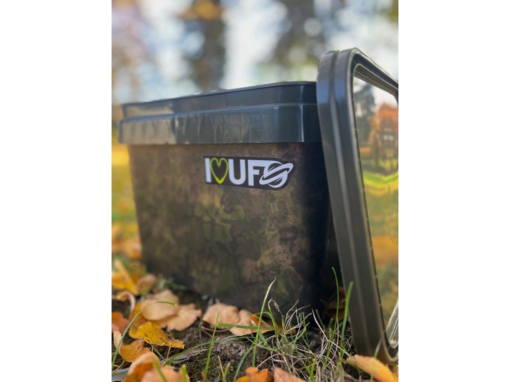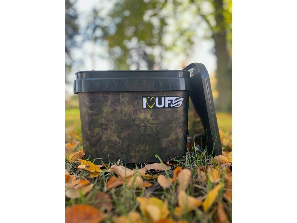 Maskáčový kyblík se zeleným víkem o objemu 10 litrů.