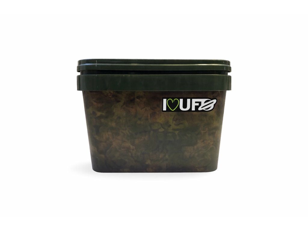 Maskáčový kyblík se zeleným víkem o objemu 10 litrů.