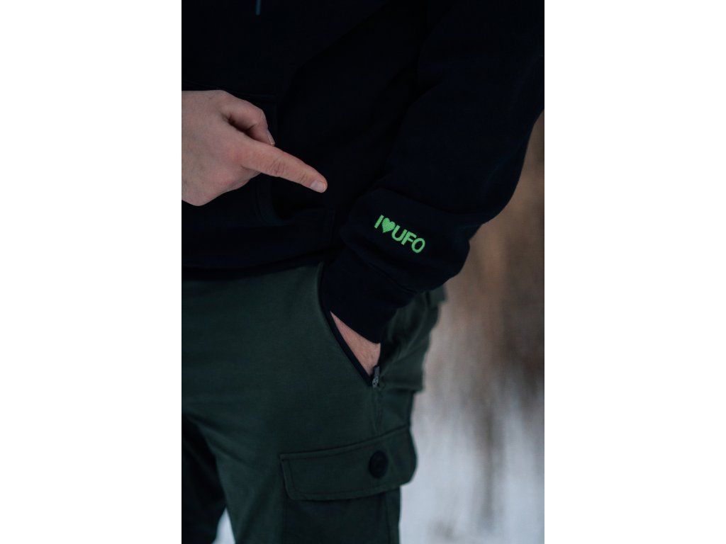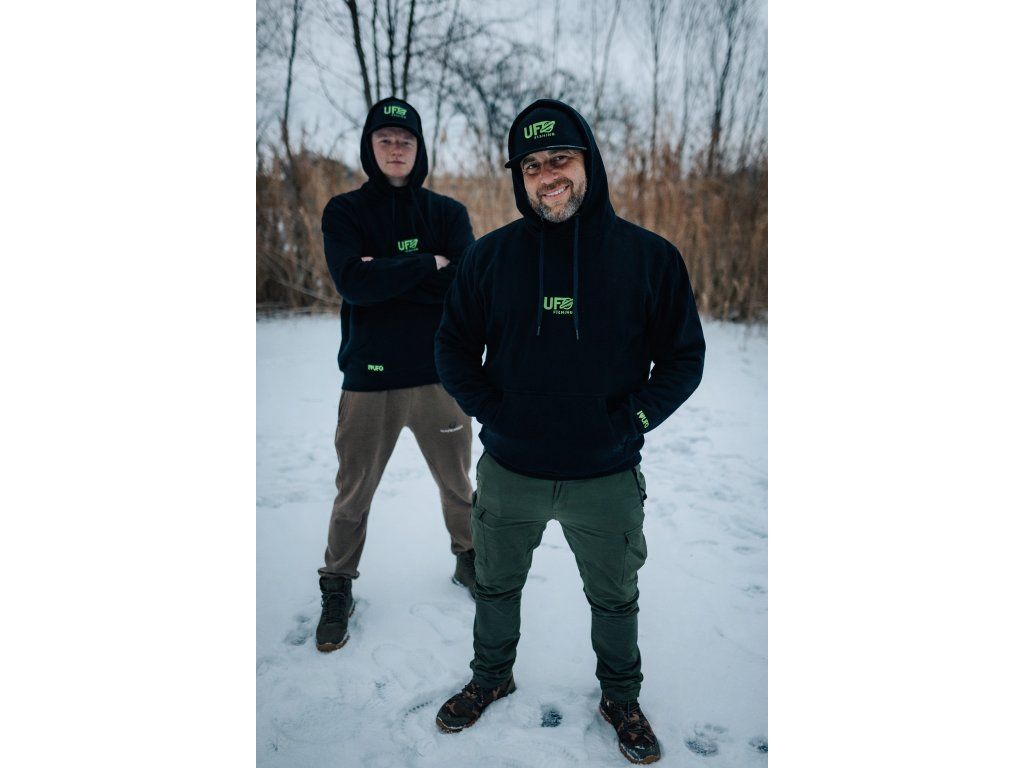 Některé věci se měnit nemusí. Naše ikonická zelená barva je s UFO Fishing od úplného začátku a pro mnohé z vás je symbolem všech těch probdělých nocí u vody a životních úlovků. Tato mikina v konzervativním stylu kombinuje poctivý černý základ s naší původní zelenou výšivkou. Je to sentimentální návrat ke kořenům pro ty, kteří vědí, kde naše cesta začala. Kvalitní materiál a střih, který vás podrží v každé situaci.