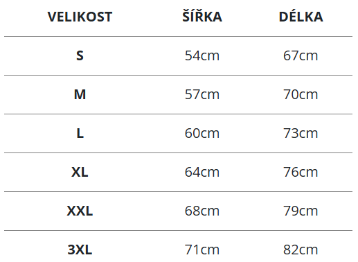 Tabulka velikostí