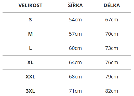 Tabulka velikostí